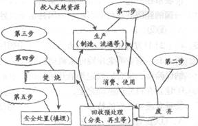 4、单选题 国务院总理温家宝2012年12月12日主持召开国务院常务会议,研究部署发展循环经济。在工业领域全面推行循环型生产方式,促进清洁生产、源头减量,实现能源梯级利用等构建循环型工业体系。在循环经济中。生产过程主要由减量化、再利用、再循环(简称3R)和正确处置等组成。读图回答下列问题。