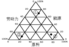 2、单选题  下图表示某些工业部门对区位因素(仅考虑原料、能源、劳动力)的依赖程度。判断图中①②③代表的工业部门分别可能是
