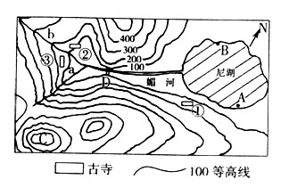 (3)支流a流经地区等高线密集,说明河流的落差大,水流急,漂流时速度快,更加惊险刺激。上游b流经地区等高线较稀,说明河流的落差较小,水流平缓一些,漂流时速度慢一些。