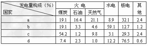 4、单选题 下表表示1998年德国、加拿大、法国、日本不同能源发电量的构成。据此回答1—2题。