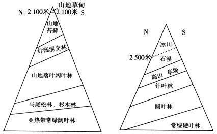 1、造成两山地南坡山麓地带气候类型不同的主要原因是