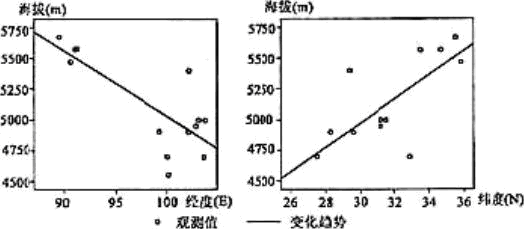 4、单选题 下图示意长江上游地区雪线高度的经向和纬向变化趋势。完成小题