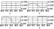 点评:本题解题关键是掌握昼夜长短分布的一般规律。本题还可以结合四地的纬度高低、正午太阳高度的变化等设计试题。