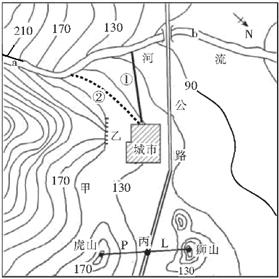 材料二我国东南沿海某城市及其周边地区的等高线(单位:米)