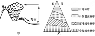 5、单选题  甲图为某地海陆水循环示意图,乙图为该地M山自然带垂直分布示意图。读图完成各题。