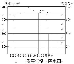 该图气温曲线,降水柱状图形都未画完,位置标的也不太准,分析图中点是气温,印度是热带季风气候,1~3 月,北半球是冬季,气温低,受北部山脉高原阻挡,风力弱,所以蒸发弱,A错。4~5 月夏季风还未到,气温已经回升,蒸发多,降水少,适宜晒盐,B对。6~9 月孟买正值雨季,降水多,蒸发弱,不适宜晒盐,C错。10~12 月,进入冬季,气温降低,风力减弱,蒸发减弱,D错。