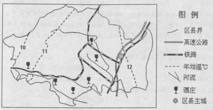 2、单选题  读近年来我国华北某大城市郊县葡萄种植区及酒庄分布示意图,完成下列小题。