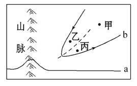 1、单选题 下图中a为地球自转线速度等速线,b表示该地某时刻的稳定风向轨迹。读图完成下列问题。