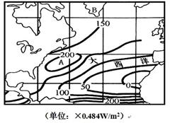 3、单选题 该图为某大洋部分海区年平均逐日从海洋输入大气的总热量分布图,读图回答问题: