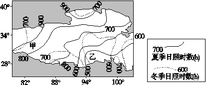 小题2:导致该区域甲、乙两地日照时数差异的最主要因素是( )