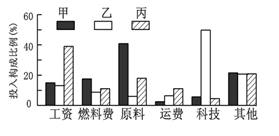 1、单选题 图中甲、乙、丙反映了三类工厂的投入构成情况,