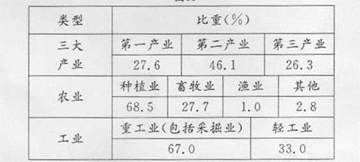 (2)从图表中可知,乙地产业结构不合理,第一产业比重较高,而第一产业又以种植业和畜牧业为主,因此可能会发生过度开垦和过度放牧现象,造成植被破坏,水土流失;工业中以重工业为主,在矿产资源的开发利用过程中如果不注意环境保护,就会出现地表植被破坏,水土流失加重,环境污染等问题。