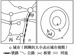3、单选题 读某地区城市分布及图中甲城市地租等值线示意图,完成题。
