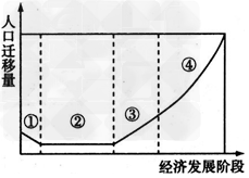 1、单选题 读人口迁移与经济发展关系示意图,回答1—2题。