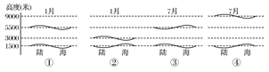 5、单选题 下列等压面示意图能正确反映高空海陆差异的是( )