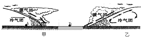 ? 甲为_________(冷、暖) 锋,乙为_________(冷、暖)锋