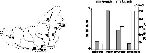 点评:本题难度较小,解答本题的关键是:(1)明确河流流向与地形地势的关系。(2)明确土壤侵蚀强度与地表植被覆盖率的关系。