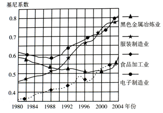 小题1:20世纪80年代以来,分布从较为分散到显著集中的产业是:(?)