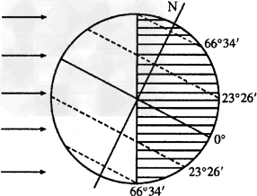 2、综合题  下图左图为北半球冬至日太阳光照示意图,右图为我国部分区域图。读图回答问题。