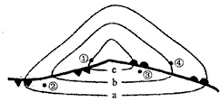 5、单选题 下图中a,b,c为海平面等压线。读图回答1—4题。