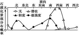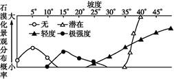 (2)潜在石漠化一般出现在地形坡度 以上地区。然而,实际上无石漠化现象最可能出现在坡度 以下地区;严重石漠化出现的坡度范围是 。?