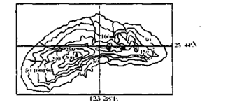 【小题2】据图估算钓鱼岛到台北市(25°N,12l°E)的距离约为(    )