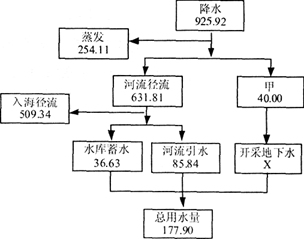 小题1:上图中甲代表的水循环的环节以及开采地下水量X是