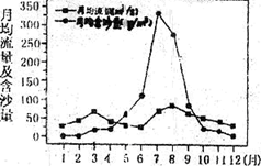5、单选题 下图是“我国某地一河流流量与含沙量逐月分布图”,完成