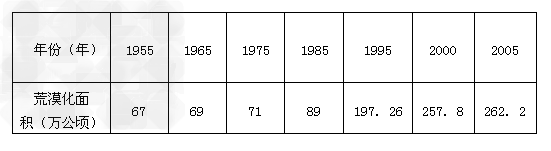 5、单选题  下表为我国土地荒漠化发展情况。读表回答下题。