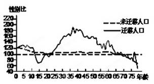 迁移人口中,男性人口比女性人口多50%以上的年龄段