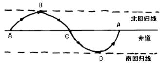 小题2:太阳直射点位于D点时,下列地理现象描述正确的是