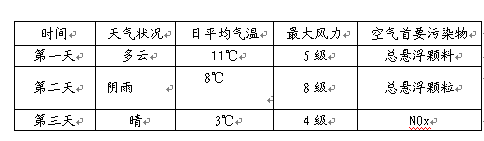 小题1:由表中日平均气温可知,温度在下降,由天气状况可知,天气在转晴,风力变小。北方某城市,根据温度,不可能是1月份。