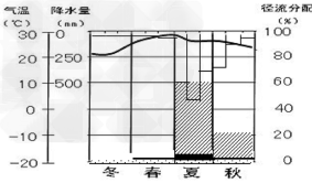 4、单选题 读某河流径流特征与降水、气温的关系示意图(?