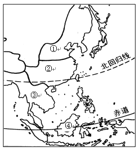 第(4)题,①、③都位于我国的热带季风区,根据热量带分析,气候类型名称①为温带季风气候,③为热带季风气候。