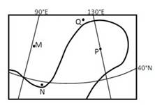 1、综合题 某高中学生夏令营在下面图示区域进行了野外天文、地质、植被、聚落等综合考察活动。他们白天当手表上的北京时间为l2 时20 分,测得树木的日影最短;夜晚测得北极星的高度角为40 °。据此回答: