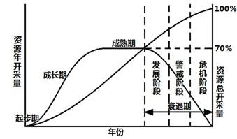 A.当资源年开采量达到70%时,资源型城市进入成熟期