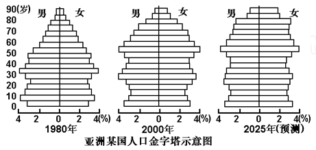 3、单选题 下图反映了亚洲某国人口增长与构成的变化及其发展趋势,回答下列各题。