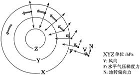 2、单选题 读“某等压线与风向变化示意图(图中X、Y、Z为气压值)”,回答下列问题。