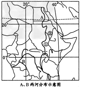 (1 )A 河名称_____________ ,B 河名称 _____________ 。