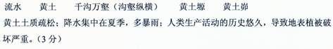 小题2:乙图反映的是长期在?侵蚀切割下形成的?地貌,该地貌的主要特征是?,其中面积较大的残留高原面称为?,孤立的土丘称为?。该区域水土流失严重的原因是(至少3点)?。