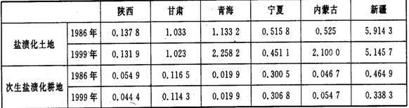 1.据表中信息,西部各省盐渍化土地的变化情况是2.据材料信息推测,我国最容易产生土壤盐碱化的地区是