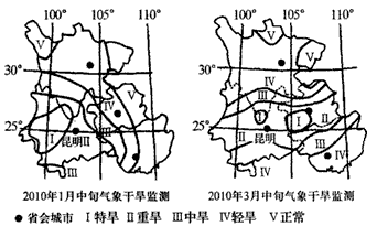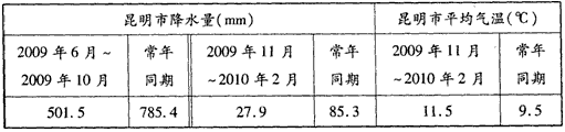 3、综合题 2009年至2010年,中国西南地区遭遇大范围持续干旱。阅读下列材料,回答问题。