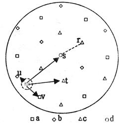 2、单选题 图所示是某研究性学习小组对一个地区的城市聚落分布进行模式化处理得出的图像,其中有省政府驻地、地级市政府驻地、县政府驻地、县级市政府驻地,甲区域分布着若干乡村聚落。读图回答题。