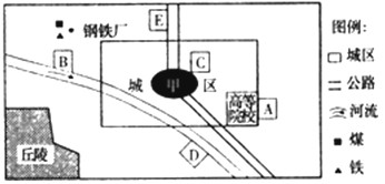 4、综合题 读我国华北某城镇及其周围工农业区位条件示意图,回答问题。