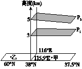 5、单选题 下图为甲地所在区域某时刻高空两个等压面P1和P2的空间分布示意图,图中甲、乙两地经度相同。完成下列小题。
