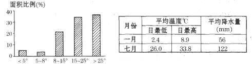 2、单选题 读“我国某地区不同坡度地形比例图”和当地气温与降水统计资料,回答小题。