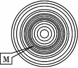 2、单选题  树木年轮是气候变化的历史证据。读某地树木年轮示意图,回答下面两题。