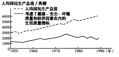 3、单选题 读图“英国人均国民生产总值与生活质量”回答: