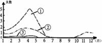 5、单选题 读北京市1960—2000年累计平均沙尘暴、扬沙、浮尘出现的季节变化示意图,完成: