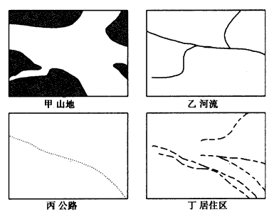 2、单选题 下图示意某地理专题研究建立的地理信息系统图层。读图完成1~2题。